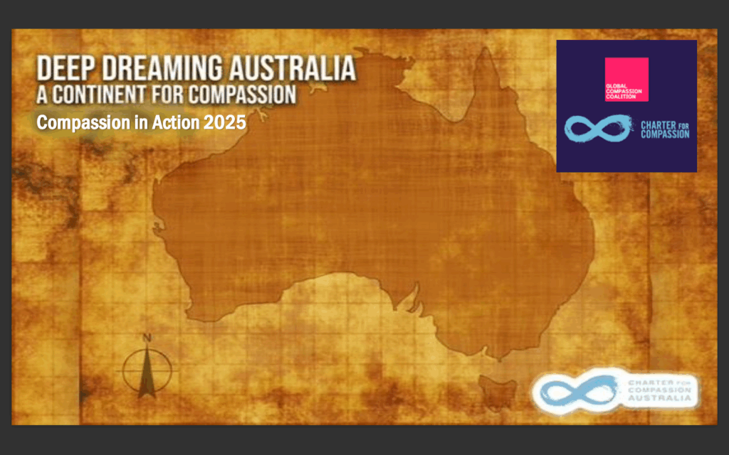 The Charter for Compassion Australia (CFCA) and the Global Compassion Coalition Australia (GCCA) warmly invite you to join our 5th National Day of Compassion. This soulful day offers all Australians (and friends around the globe) an opportunity to learn about & practice compassion – so needed in our stressful times.